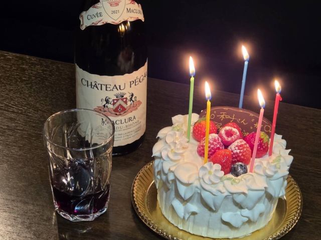皆で、素敵なお客様からいただいたワインとケーキをいただきました。
